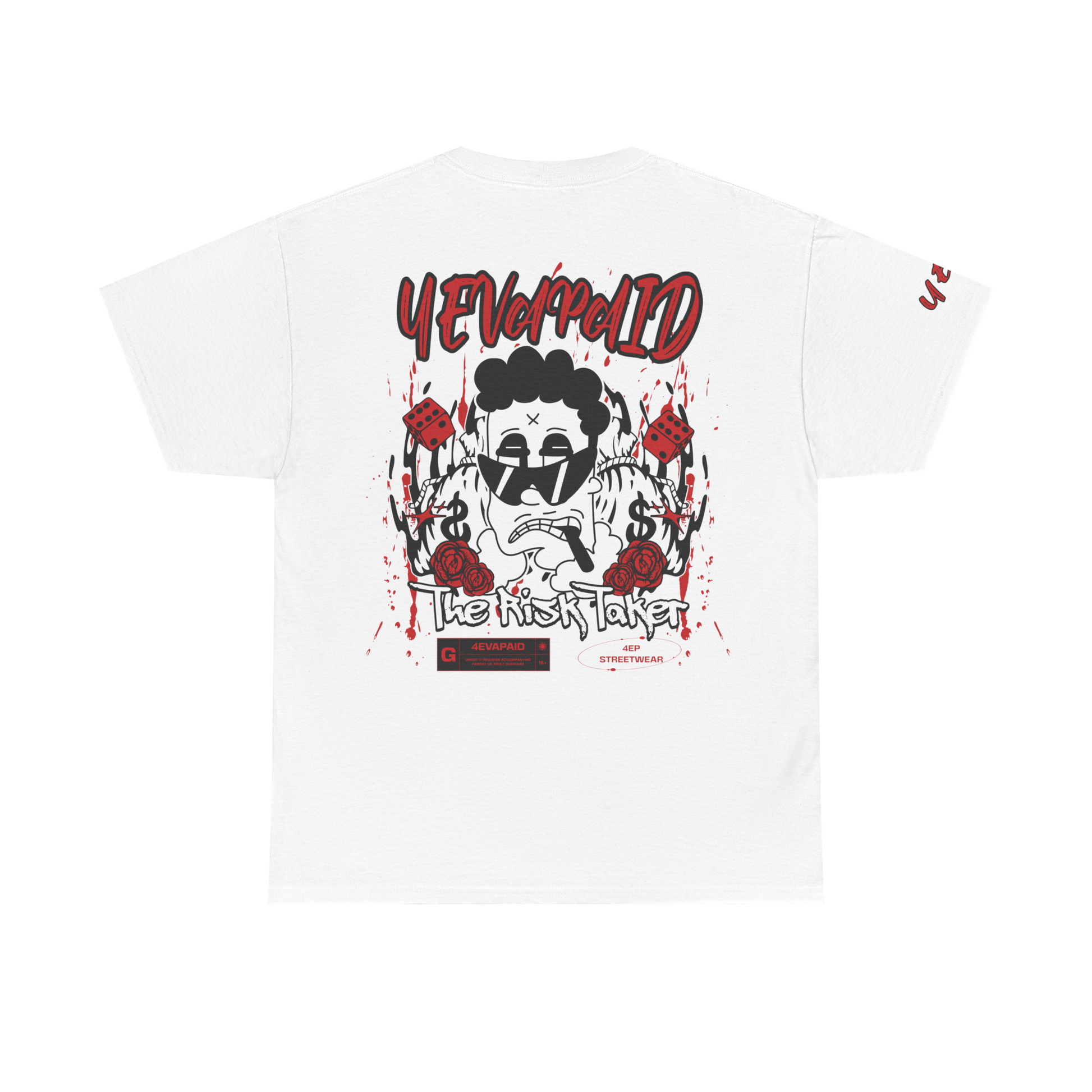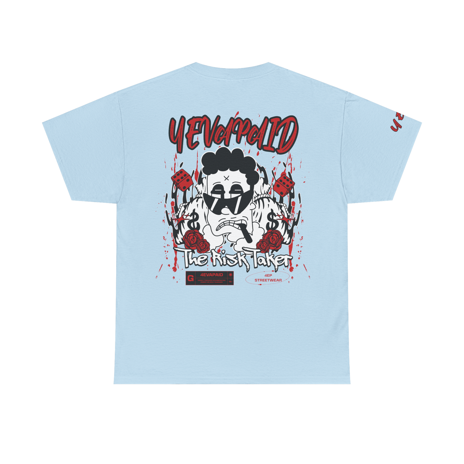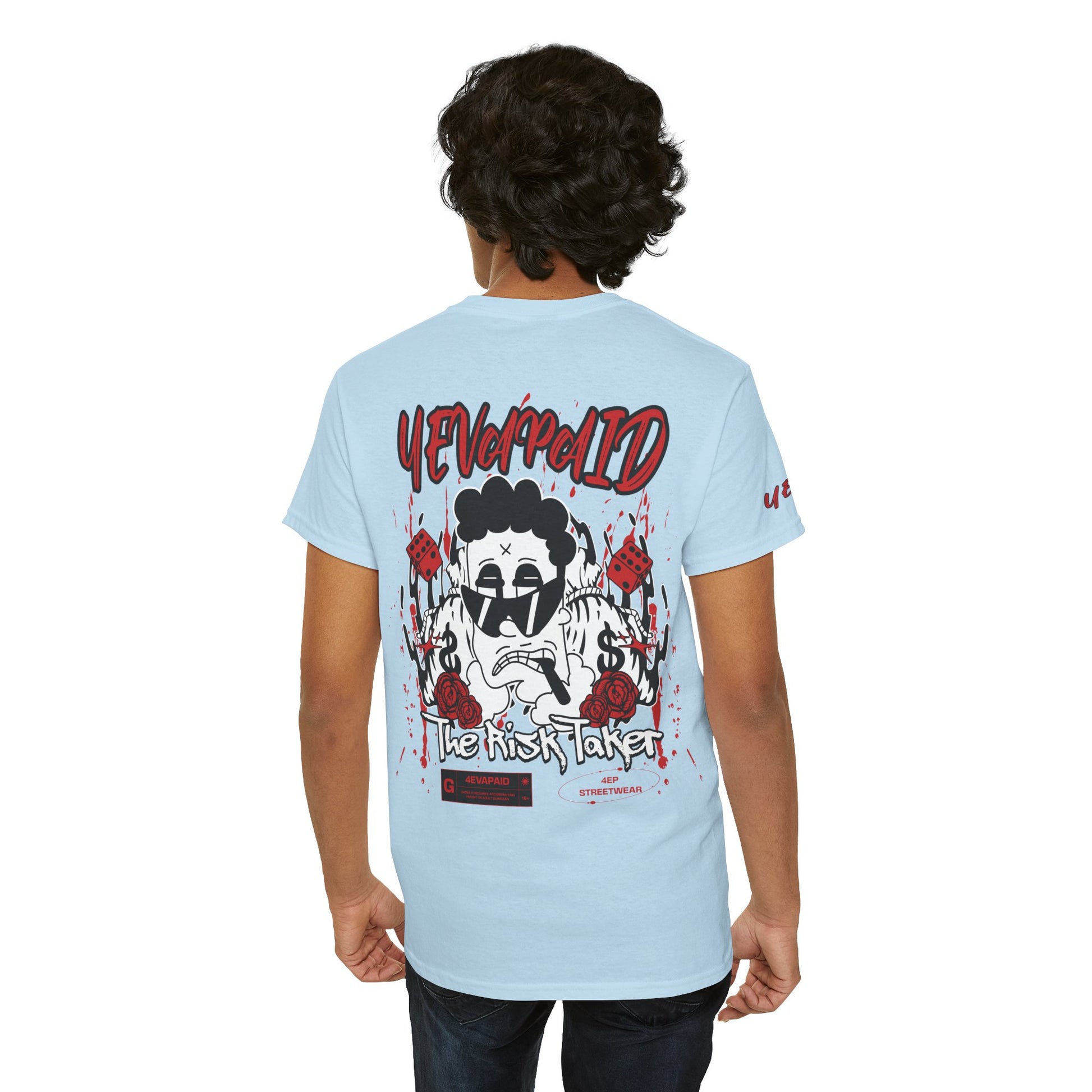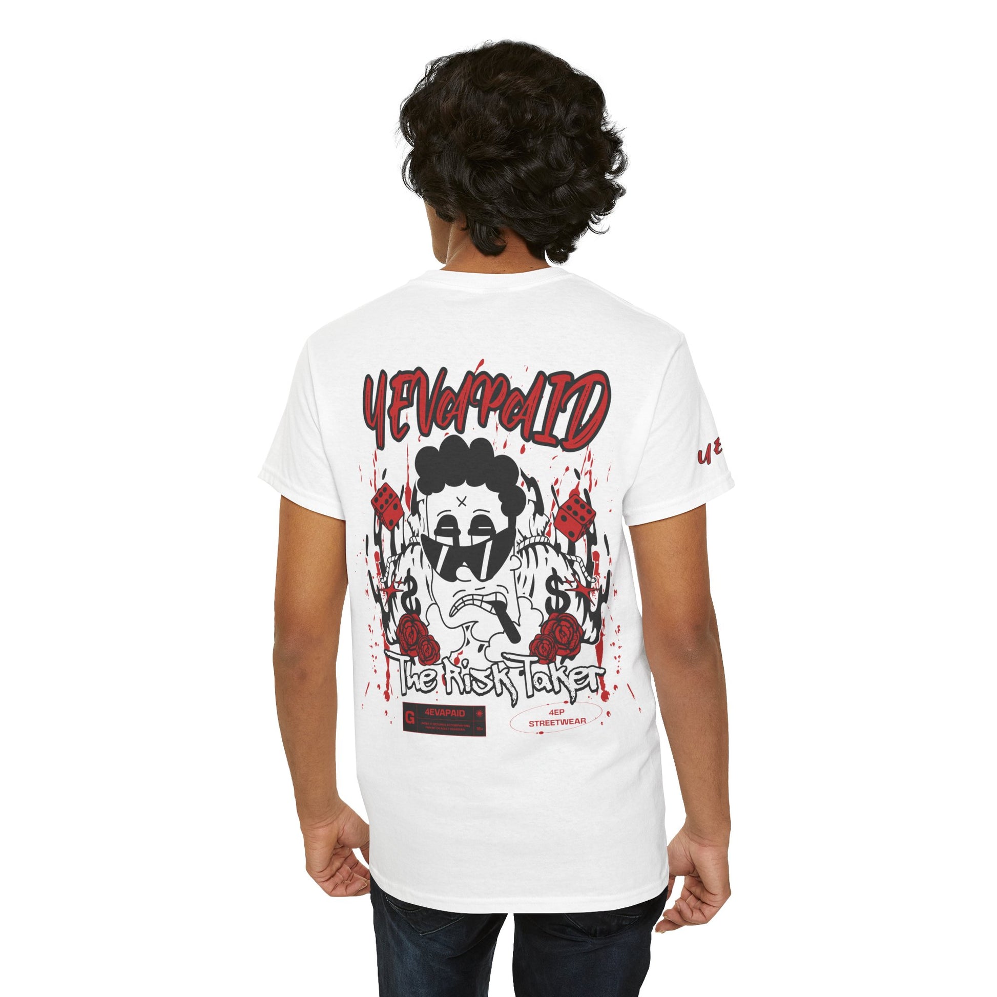 For those who live life on the edge, the "Risk Taker" Tee by 4EVAPAID captures the bold spirit of going all in. This design features a gritty character surrounded by symbols of chance—dice, dollar signs, and roses—representing the highs and lows of risk-taking. Made from 100% premium cotton, this tee combines comfort with a streetwear edge, making a statement that fortune favors the fearless. Whether you’re out making moves or just repping your hustle, this tee brings the energy of those who dare to win big.
